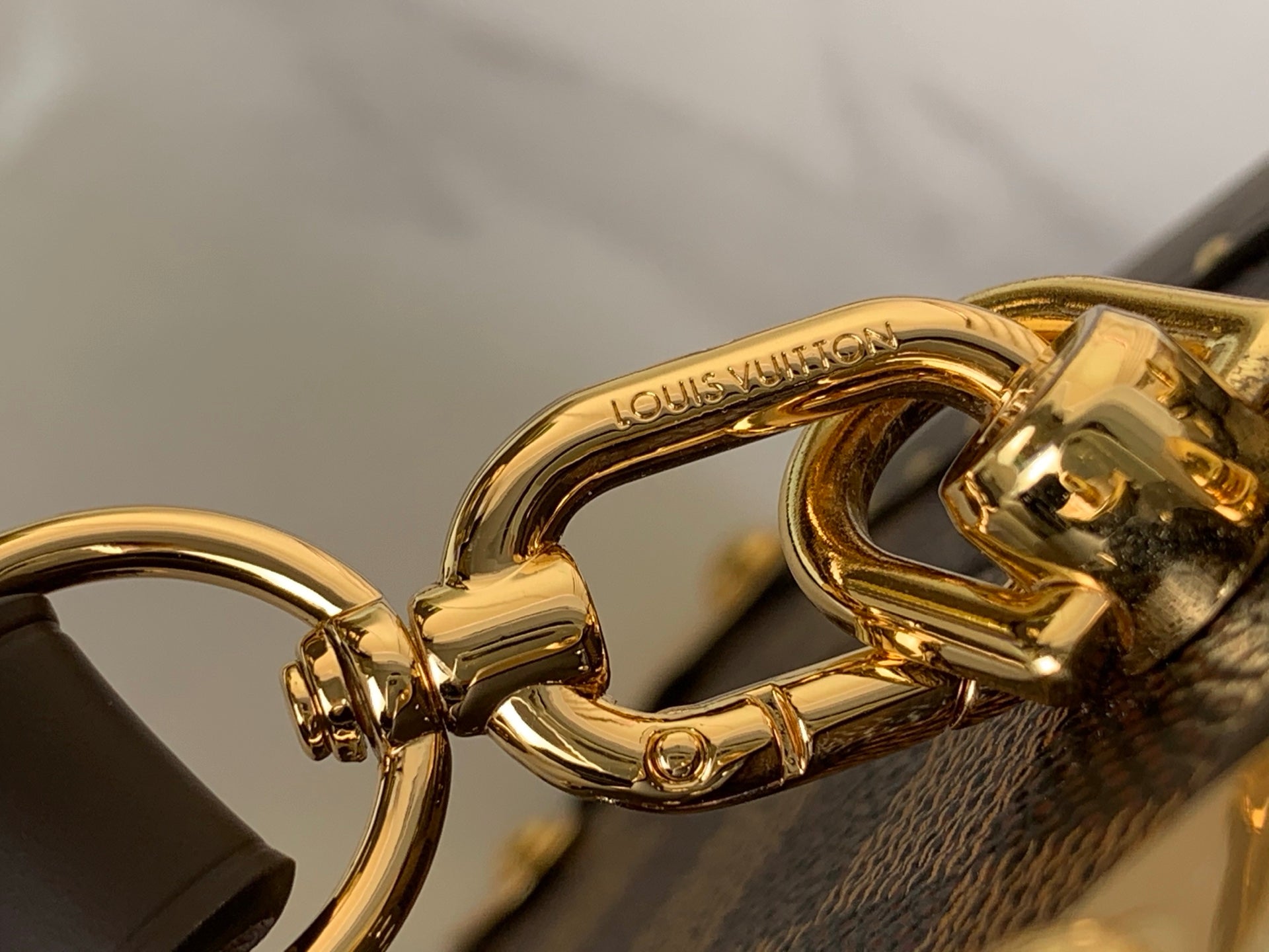 • Unrivaled Indistinguishability: This replica matches the gold-toned hardware perfectly, from the four studded leather corners to the polished trunk closures and the ring that holds the pouch. The precise dimensions and texture of the canvas are maintained, ensuring a bag that cannot be distinguished from the authentic model without internal serial verification.